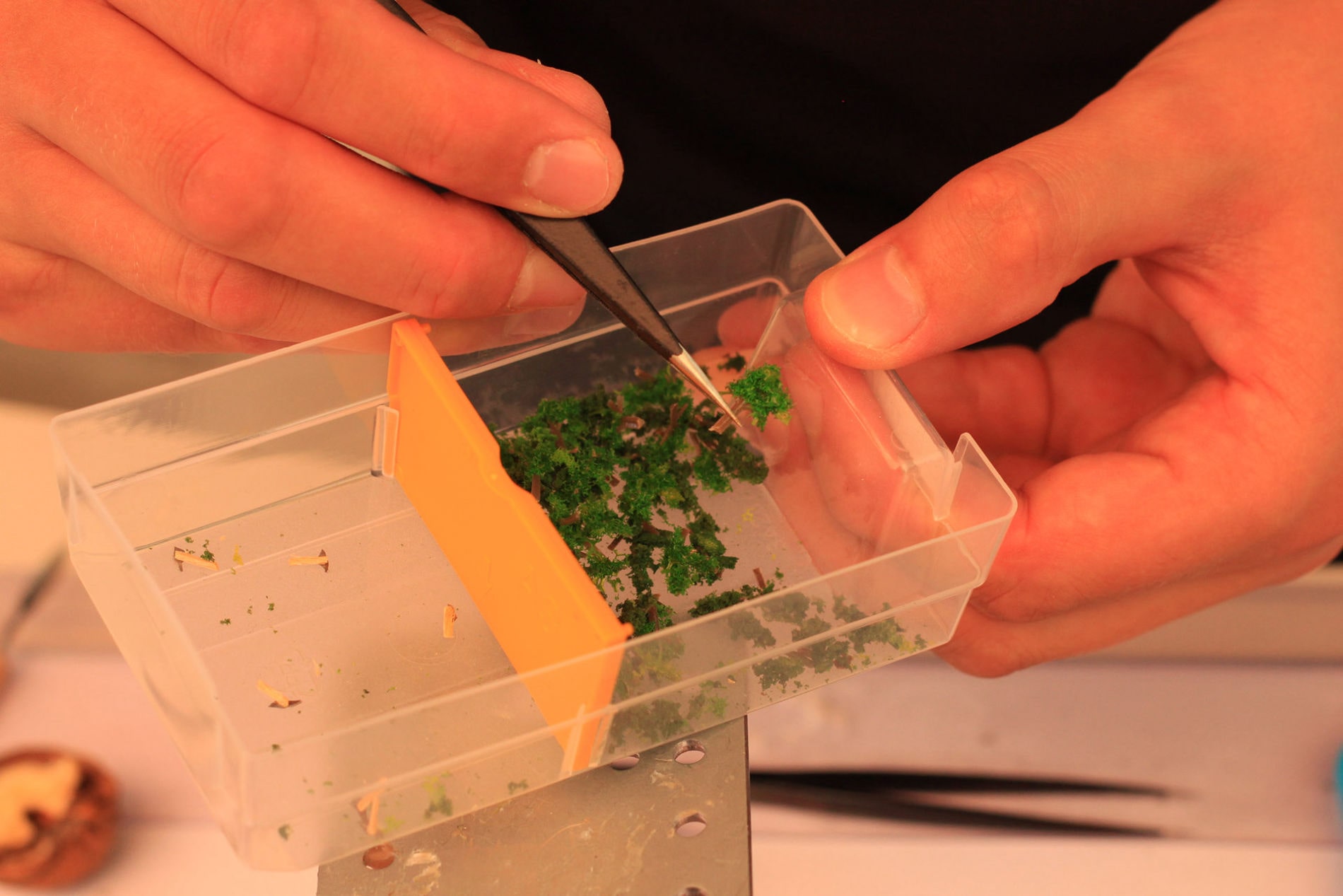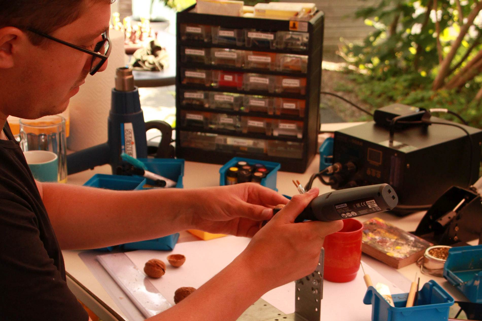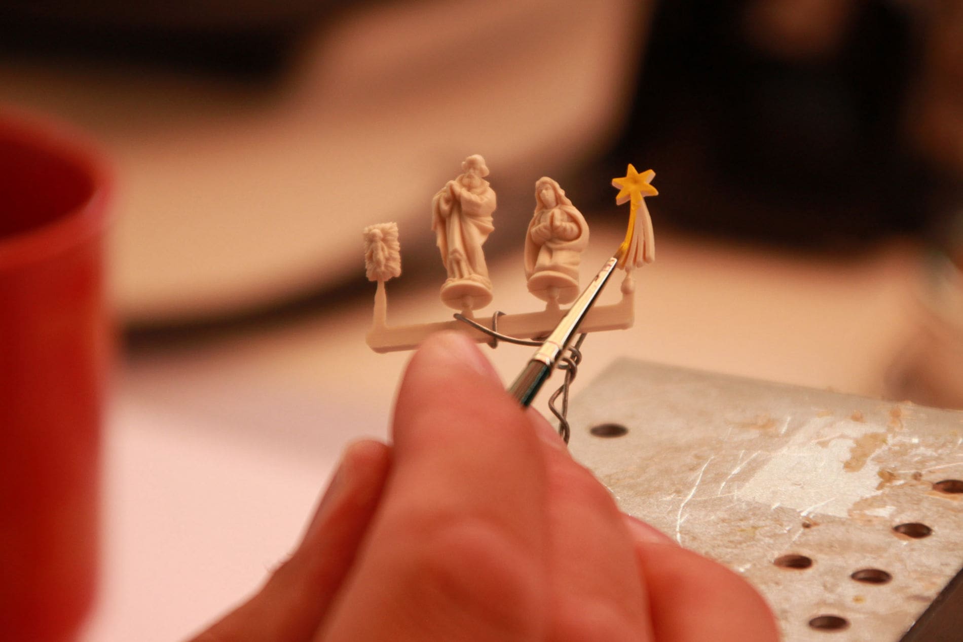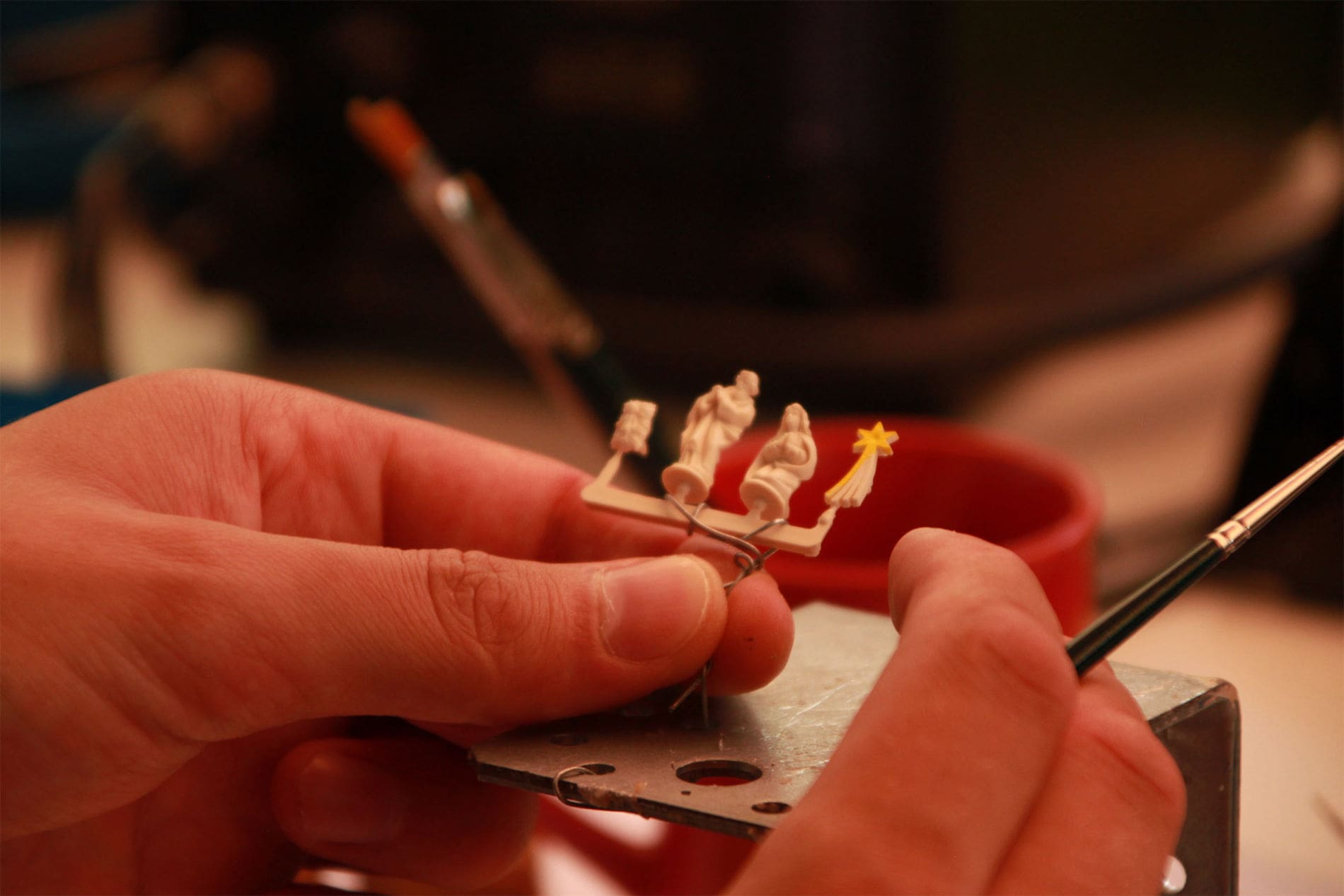 Es wird gefräst, geföhnt, geklebt und bemalt, bis das Jesu-Kindlein in der Krippe liegt.